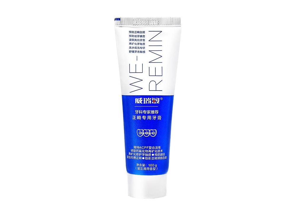 防龋、再矿化双重功效:含有氟化物预防龋齿,氟化物防龋结合活性磷酸钙再矿化,再矿化效果更强大,可用于正畸人群的脱矿白斑预防